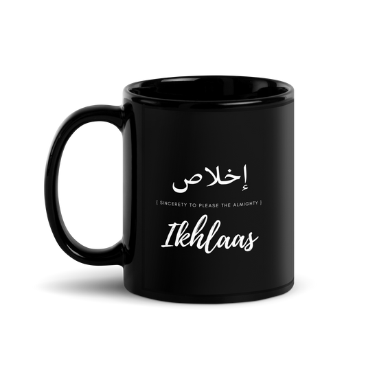 MUG Glossy Black - IKHLAAS (SINCERETY) Arabic/English - White