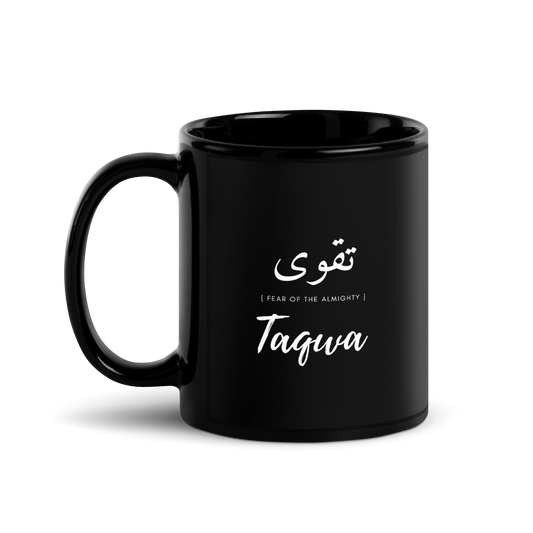 MUG Glossy Black - TAQWA (FEAR OF THE ALMIGHTY) Arabic/English - White