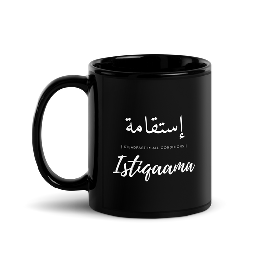 MUG Glossy Black - ISTIQAAMA (STEADFAST) Arabic/English - White