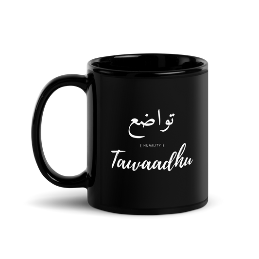 MUG Glossy Black - TAWAADHU (HUMILITY) Arabic/English - White