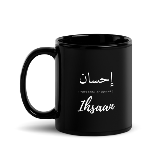 MUG Glossy Black - IHSAAN (PERFECTION) Arabic/English - White