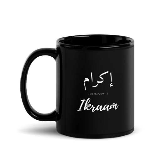 MUG Glossy Black - IKRAAM (GENEROSITY) Arabic/English - White