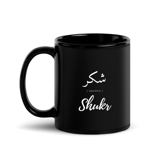 MUG Glossy Black - SHUKR (GRATEFUL) Arabic/English - White