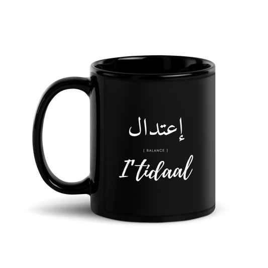 MUG Glossy Black - I'TIDAAL (BALANCE) Arabic/English - White