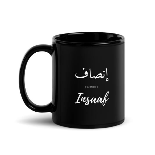MUG Glossy Black - INSAAF (JUSTICE) Arabic/English - White