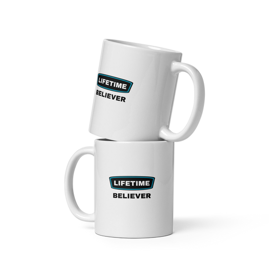 MUG Glossy White - LIFETIME BELIEVER - Black/Teal