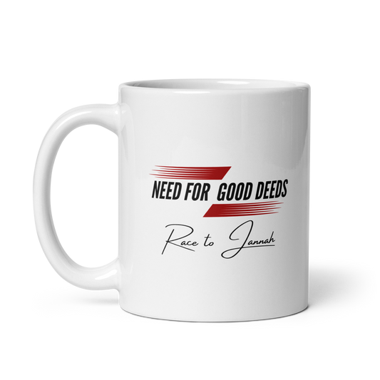 MUG Glossy White - NEED FOR GOOD DEEDS - Black/Red