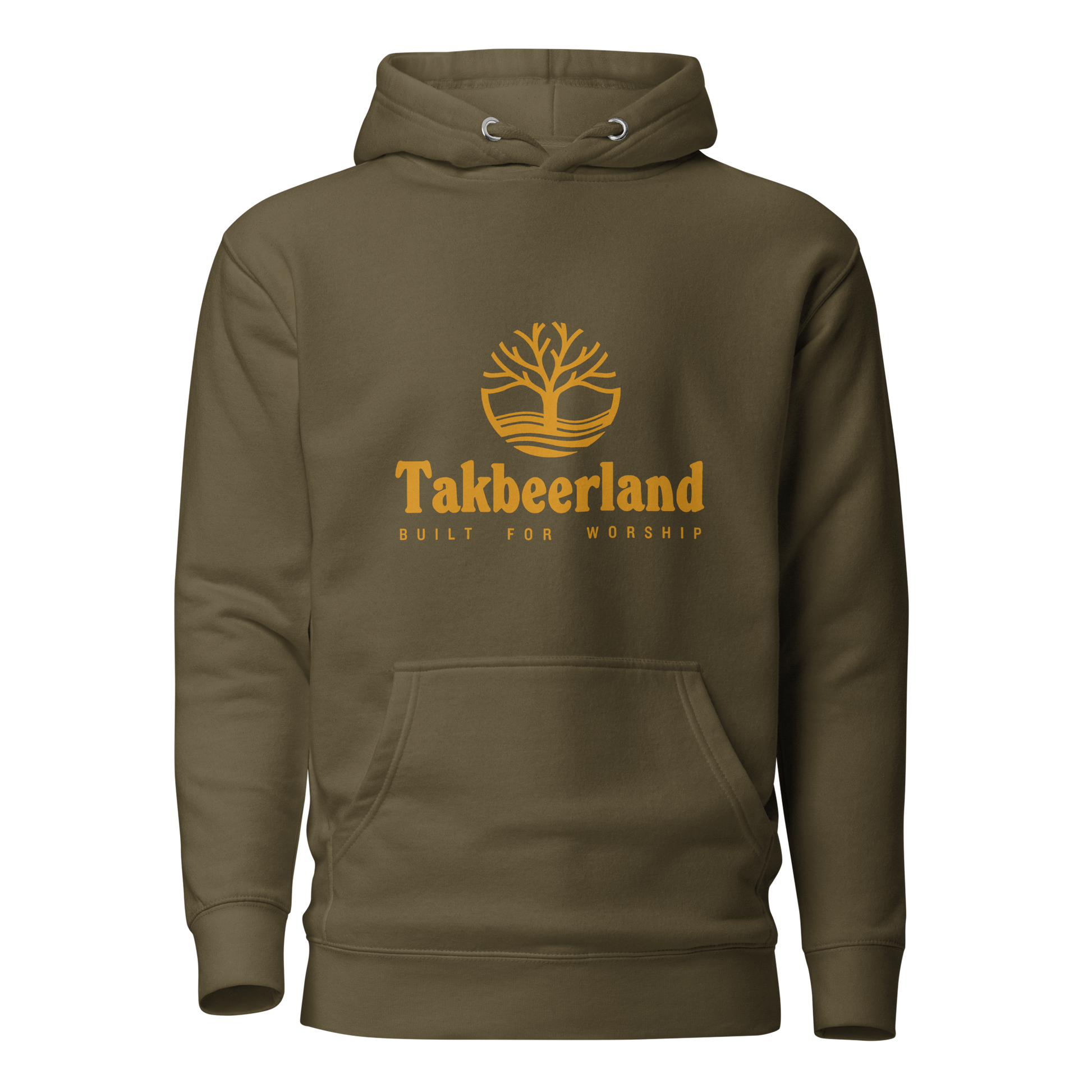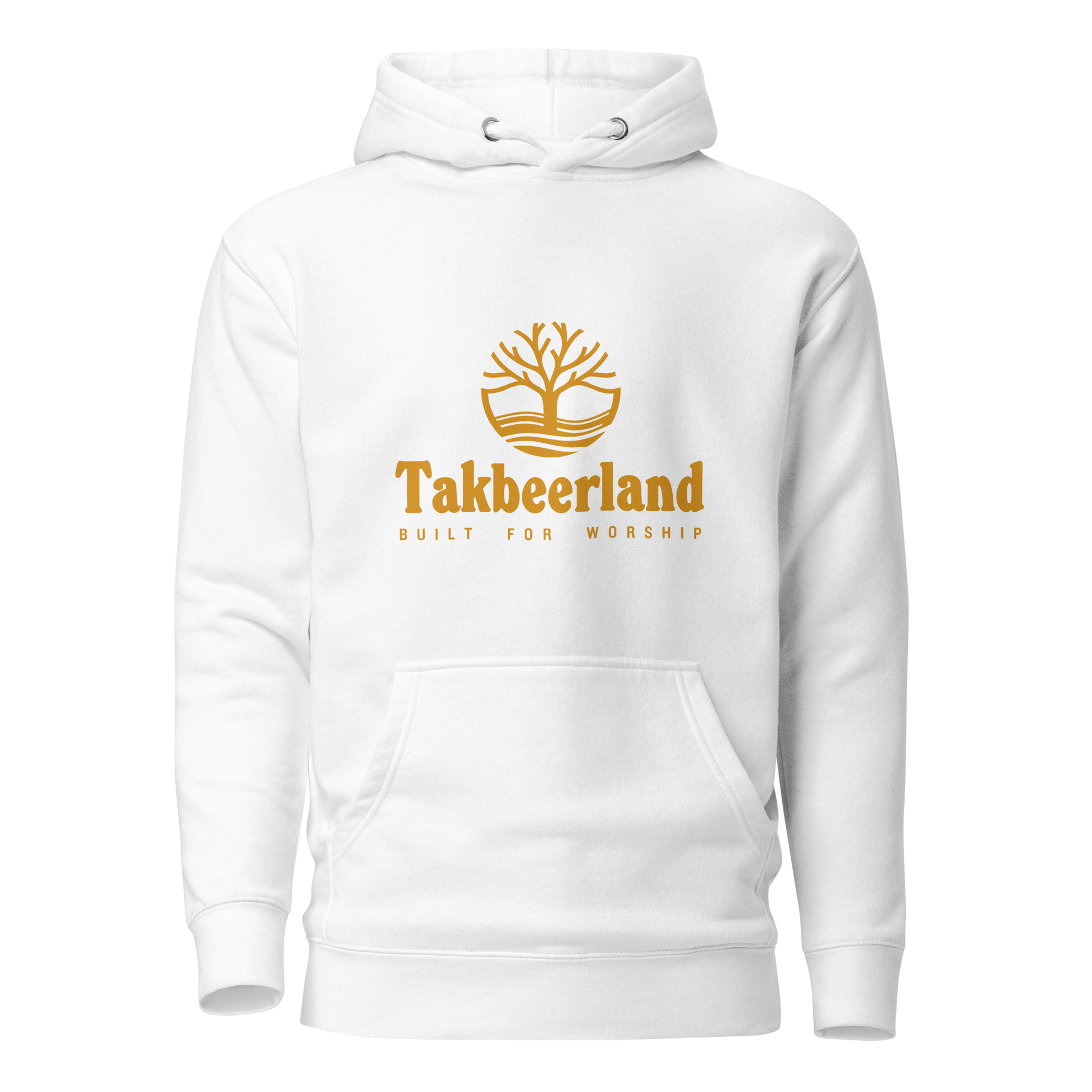 HOODIE Premium (Adult) - TAKBEERLAND FULL LOGO (Centered/Medium) - Gold